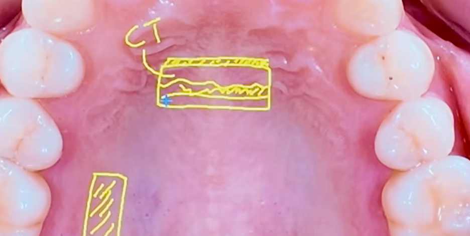 출처 - 권의시선 : 치과의사 권낙현 유튜브  CTG(결합조직이식술)-입천장에서 결합조직을 채취하여 내려앉은 잇몸에 이식하는 치료방식